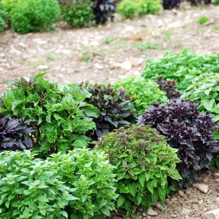 Bunte Basilikummischung in vielen Farben und Formen. Sehr schön und aromatisch. Für Topf & Garten. Eigene Züchtung.