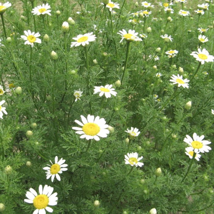 Altes Würz- und Heilkraut, welches schon von Hildegard von Bingen benutzt wurde. Auch als Teufelsbart, staudige Wucherblume, Strauchmargerite, Nieskraut, Leberbalsam oder römische Ringelblume bezeichnet. Der Geschmack des Krautes ist aromatisch mit leichter Bitternote. Verwendet werden in der Küche Kraut oder Wurzel, die getrocknet und zu Pulver vermahlen werden. Die Blüten sind der Kamille ähnlich, aber größer. Die Pflanze ist mehrjährig und blüht ca. von IV-VI. Pflanzenhöhe 40-60cm. Aussaat III-VI direkt ins Beet oder früher bei Voranzucht. Samen nicht mit Erde bedecken, nur andrücken und leicht feucht halten.