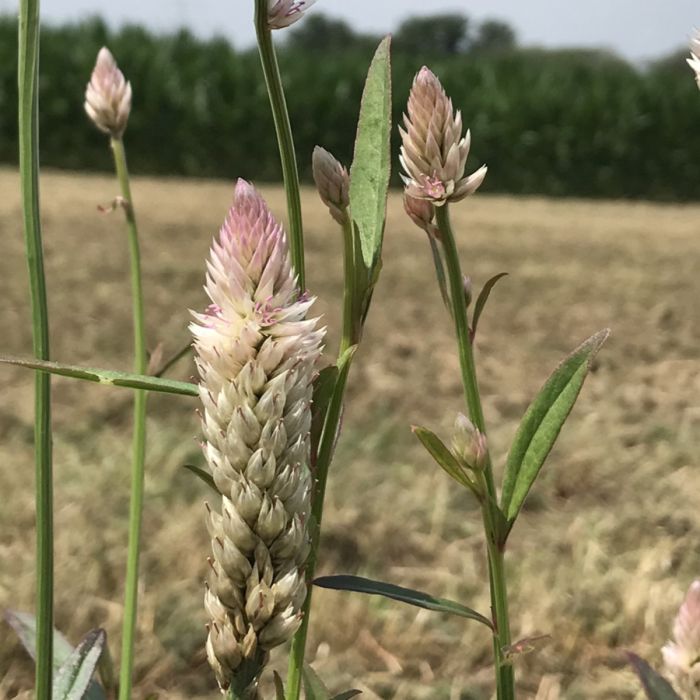 Wilde Form des Ährenamaranths, auch Hahnenkamm genannt. Zahlreiche elfenbeinweiße Blütenähren mit einem Hauch rosa sitzen an langen Stielen. Als Schnittblume oder zum Trocknen geeignet. Bis zu 40cm hoch. Voranzucht: IV-V oder Direktsaat ab Mai. 10X30cm.