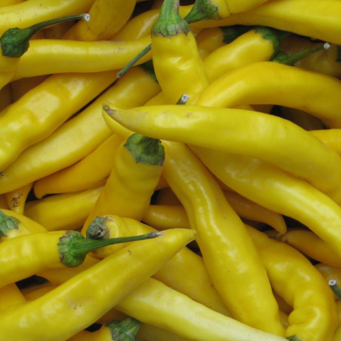 Leicht scharfe, knackig feste, gelbe Früchte, die spitz nach oben an der Pflanze abstehen. Ertragreiche Sorte aus dem Kosovo. Freilandgeeignet. Aussaat ab Feb / März in Vorkultur zur Pflanzung Ende April / Mai im Freiland. Warm keimen lassen (25-30°C). Danach kühler stellen (18-24°C), aber vor allem mit genügend Licht (mind. 2000-3000 Lux).