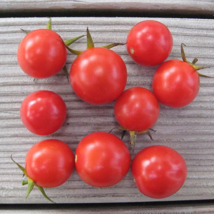 Nette, kleine, rote Cocktailtomate fürs Freiland mit mittlerem Ertrag.