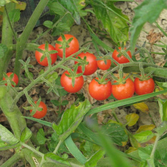 Wildtomate mit kleinen, süßen, runden, roten Früchten; Durchmesser ca. 1,5cm. Freilandgeeignet. Am besten als Buschtomate ziehen und nicht ausgeizen. Gut als Bodendecker verwendbar. Die Keimung ist eher langsamer als bei anderen Tomatensorten.