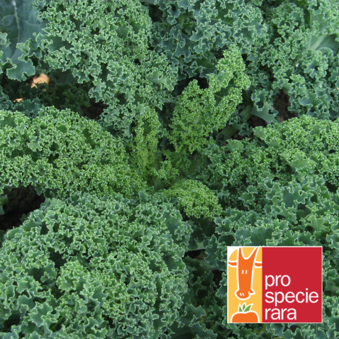 Wertvolles Winterfrischgemüse. Dunkelgrüne, stark gekrauste Blätter, die ab Ende Herbst sehr schmackhaft und vitaminreich sind. Pro Specie Rara-Sorte. Aussaat im Juni.