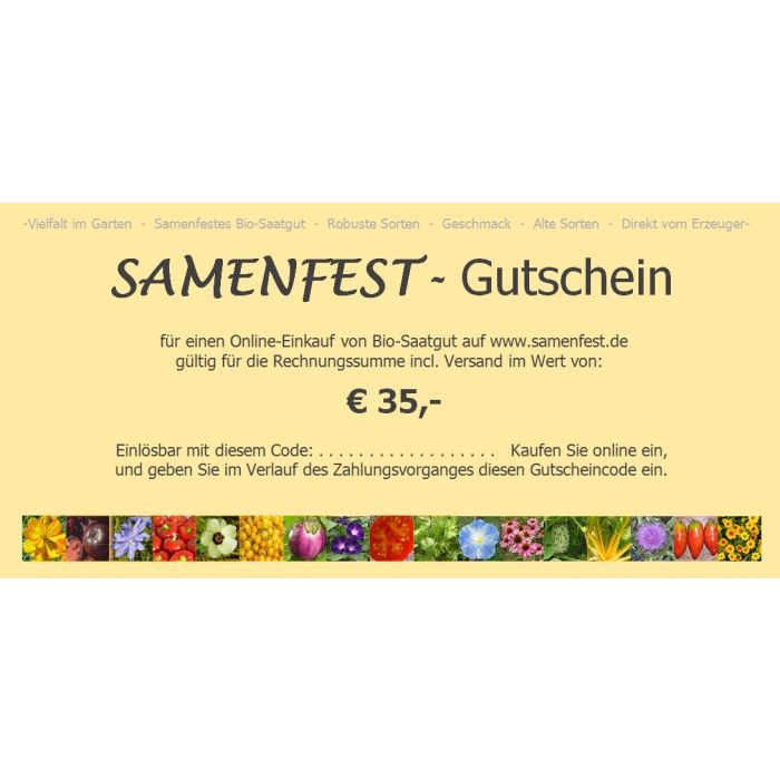 Schenken Sie Vielfalt für den Garten. Dieser Gutschein ist für den Kauf aus unserem gesamten Saatgut-Sortiment einlösbar (Warenwert plus Versandkosten).