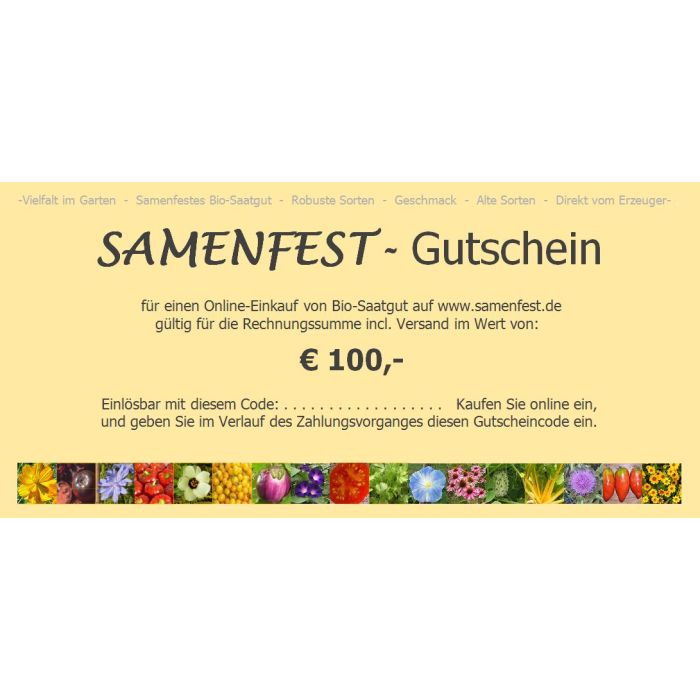 Schenken Sie Vielfalt für den Garten. Dieser Gutschein ist für den Kauf aus unserem gesamten Saatgut-Sortiment einlösbar (Warenwert plus Versandkosten).