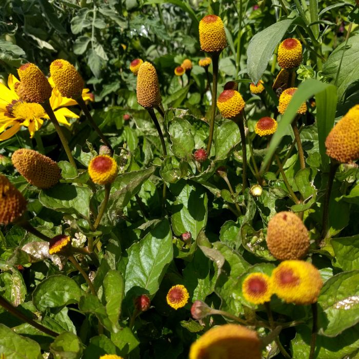 Einjährige Rarität unter den Gewürzpflanzen, auch Jambu genannt - und nur selten erhältlich. Die ganze Pflanze ist verwendbar. Die dunklen Blätter untermalen die eiförmigen, nur aus Röhrenblüten bestehenden Blütenköpfe. Jambu enthält Spilanthol, welches betäubend und schmerzlindernd wirkt. In Südamerika wird es für traditionelle Gerichte verwendet, die Blüten werden auch als prickelnder Zusatz in Salaten genutzt. Der Geschmack ist prickelnd, besonders und kräuterig. Vorziehen bei 18-24° ab März, Auspflanzen nach Frost, Abstand 10-20cm. Vor Schnecken schützen!
