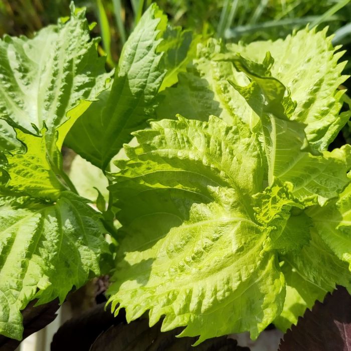 Der rote (Varietät Purpurascens) und grüne Shiso (Varietät Crispa) haben zum Teil deutliche Geschmacksunterschiede. Der rote Shiso hat eine deutliche Anis- und Minznote, wogegen der grüne Shiso mehr nach Zitrone schmeckt. Beim Welken und längerem Marinieren entwickelt grüner Shiso ein zimtähnliches Aroma.