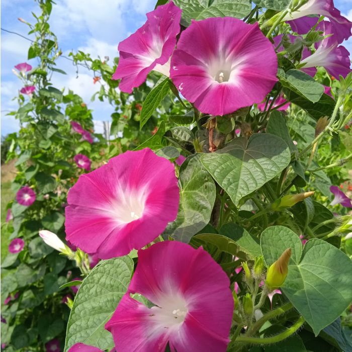 Sehr schöne rubinrote Blüten; einjährige, stark verzweigte Kletterpflanze mit einer Höhe von 2-4m.