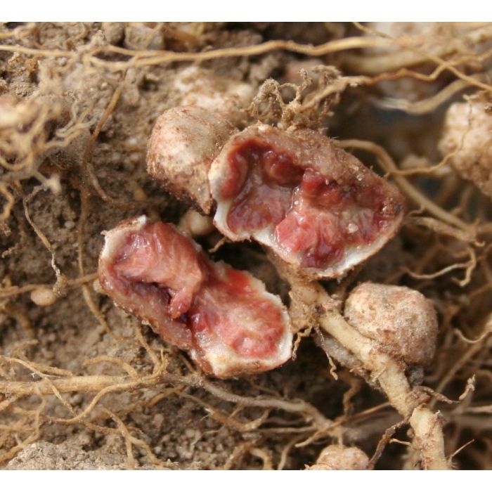 Die Symbiose zwischen Sojapflanze und Rhizobien ist ein lebendiger Prozess und hängt von vielen Faktoren wie Boden, Witterung und Sorgfalt bei der Impfung ab. Daher können wir keine Garantie für den Erfolg der Impfung übernehmen.