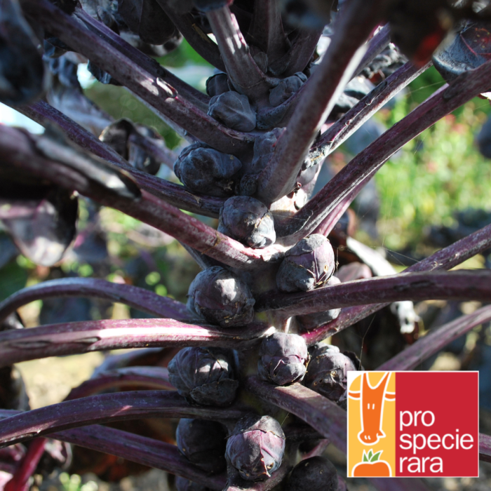 Ab Ernte 2025 wieder lieferbar. Alte Rosenkohlsorte mit violett-roten Röschen von zartem Geschmack. Pro Specie Rara-Sorte.