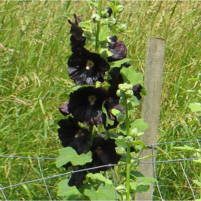 Tiefschwarz blühende Stockrose; früher auch als Färbepflanze genutzt. Im ersten Jahr wird nur eine Blattrosette gebildet. Höhe 1,20 bis 1,80m mit Blüte im 2.Jahr.