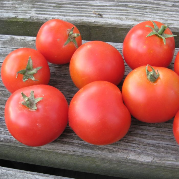 Frühe Buschtomate für Topfkultur, wird nur 30cm hoch, trägt aber mehrmals; kein Ausgeizen nötig! Rote Früchte mit ca. 4-5cm Durchmesser.